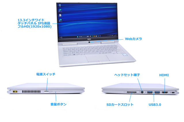 | 液晶 | 13.3型ワイドTFTカラーIPS方式液晶 (フルHD:1,920×1,080ドット、LEDバックライト、ノングレア)、タッチパネル (静電容量方式) | |