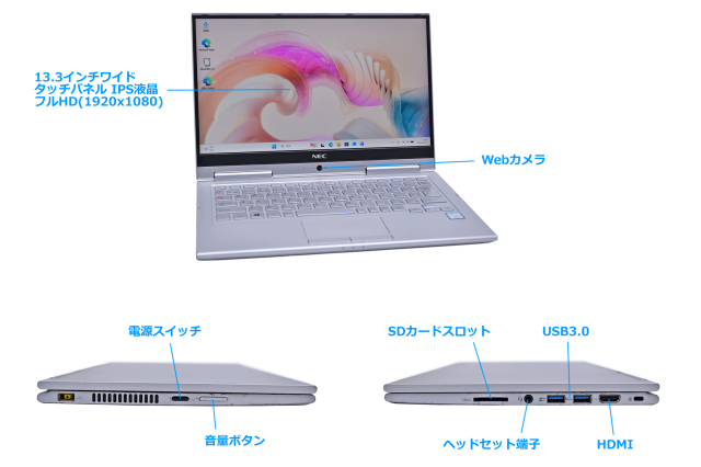 | 液晶 | 13.3型ワイドTFTカラーIPS方式液晶 (フルHD:1,920×1,080ドット、LEDバックライト、ノングレア)、タッチパネル (静電容量方式) | |