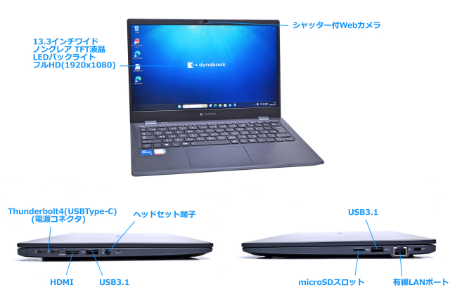| USBポート | USB3.1×2、Thunderbolt4 (USBType-C) (電源コネクタ、PD対応、外部ディスプレイ出力対応) | |