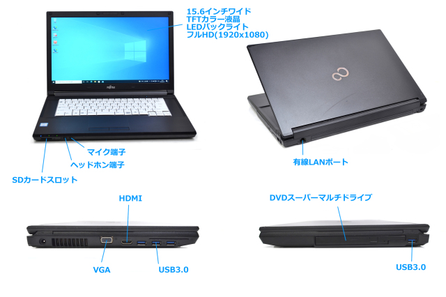 | 液晶 | 15.6インチ LEDバックライト付TFTカラー液晶ディスプレイ (フルHD 1920 x 1080) | |