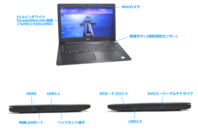 | 液晶 | 15.6インチ フルHD (1920 × 1080) アンチグレア (16:9) Twisted Nematic パネル 液晶 | |