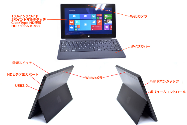 | 標準搭載アプリ | Office 2013 RT (Word、PowerPoint、Excel、OneNote) Windows メール 、SkyDrive、Bing、Xbox ミュージック、Xbox ビデオ、Xbox ゲーム |