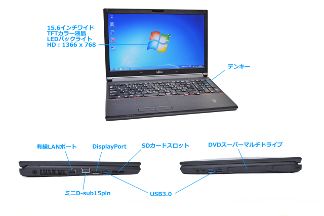 | 液晶 | 15.6型ワイドLEDバックライト付TFTカラーLCD HD (1366×768ドット) | |