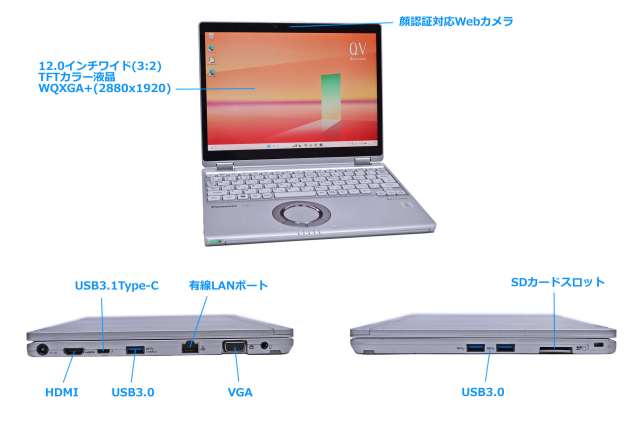 | 液晶 | 12.0型 (3:2) WQXGA+ TFTカラー タッチパネル液晶 (2,880×1,920ドット) | |