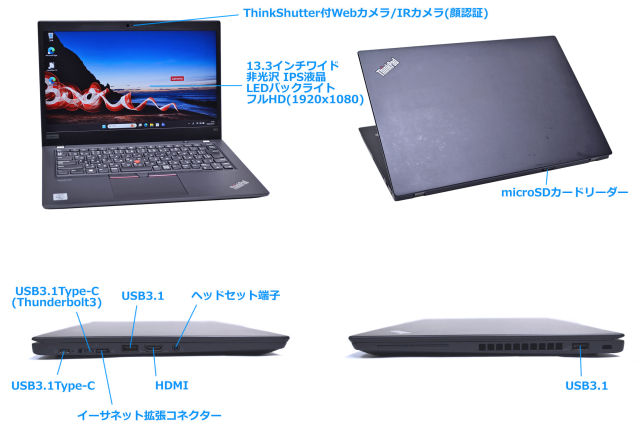 | 内蔵カメラ | HD 720p (ThinkShutter付)、IRカメラ (顔認証) | |